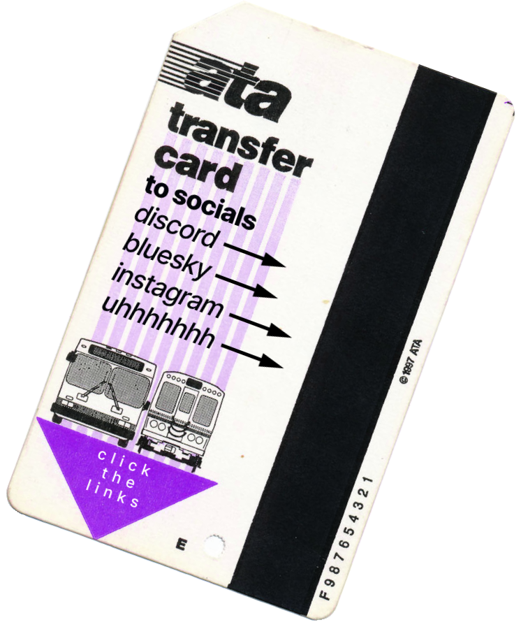 this isn't really an FAQ but more of random info about me or the site! ok who tf are you? we're a, an entity who makes random shit on the interwebs and on the terrestial plane! that's it?? what are you, a fed? why is your website like this? it's inspired by lots of things, some of which being receipts, the early 2000s internet experience, & transit agencies!